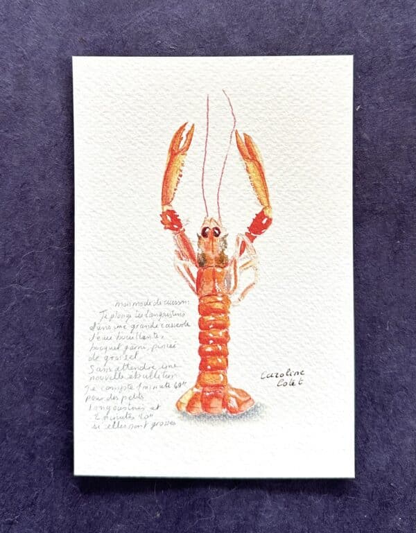 Reproduction de mon aquarelle originale La langoustine du Guilvinec.