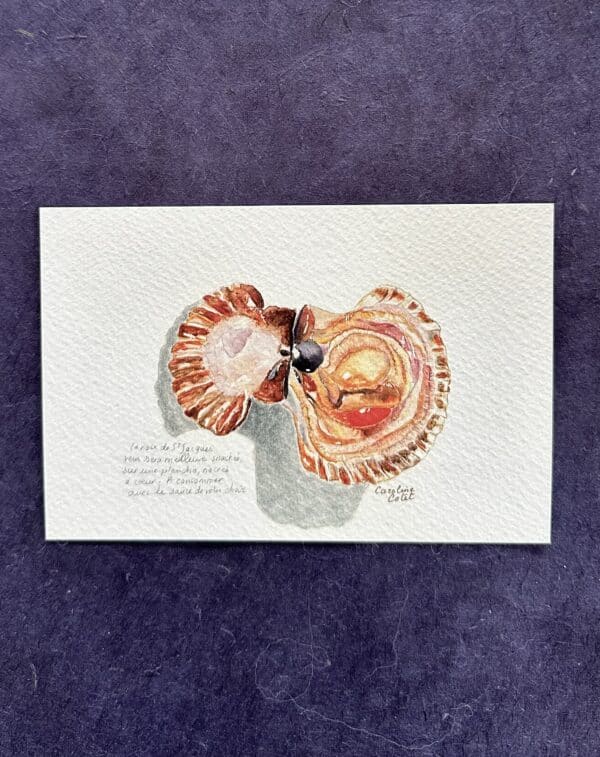 Reproduction de mon aquarelle originale La noix de Saint Jacques.
