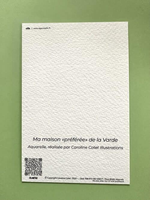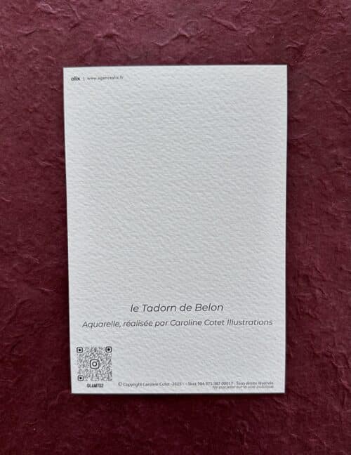 – Imprimée sur papier à grain fin 350 grammes blanc texturé